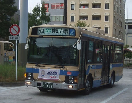 当初は小型車がメインの路線でしたが、中型車の運行もよく見られるようになってきました。308系統の方向幕は中型車のみの搭載となっています。